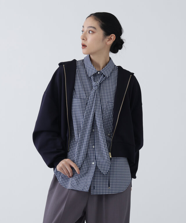 【瞬間コ-デ】襟をオンオフ。洗える楽ちんキレイ見えジャージークレリックブラウス