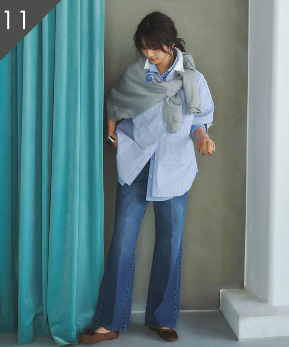 【岸本セシルさん着用】【小室安未さん着用】センタープレスフレアデニムパンツ