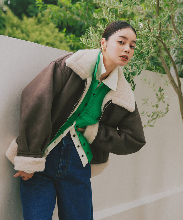【岸本セシルさん着用】フェイクムートンボアブルゾン