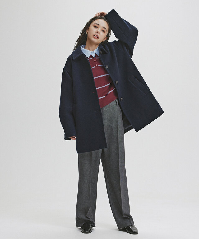 【岸本セシルさん着用】ポロ襟フレアカフスニット
