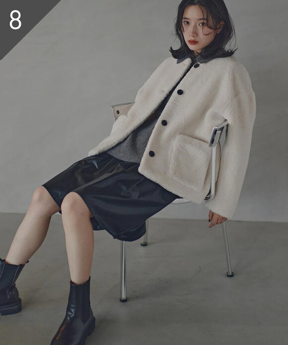 【岸本セシルさん着用】ノーカラーボアブルゾン