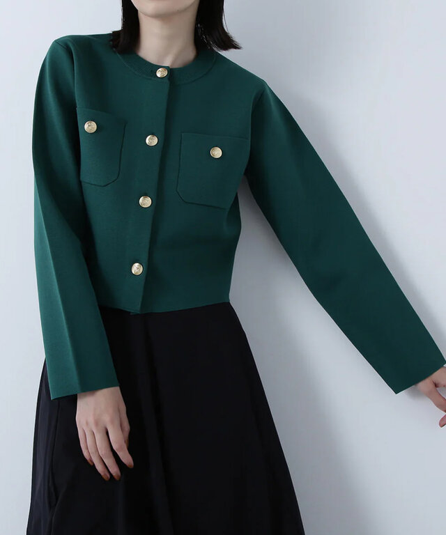 【横浜ジョイナス・mix.tokyo 限定カラー:ダークグリーン】エンブレムボタンニットジャケット