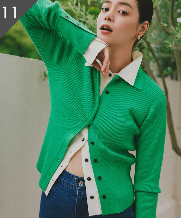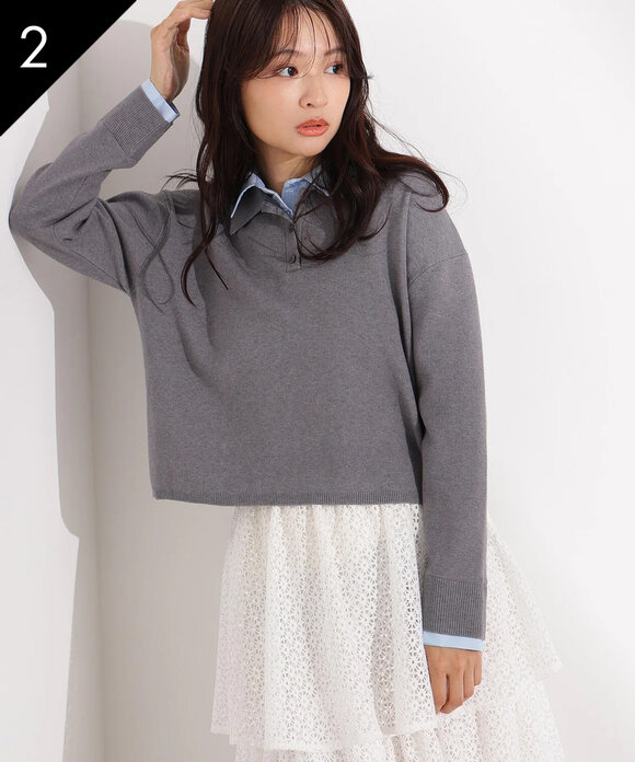 【岸本セシルさん着用】ポロ襟フレアカフスニット