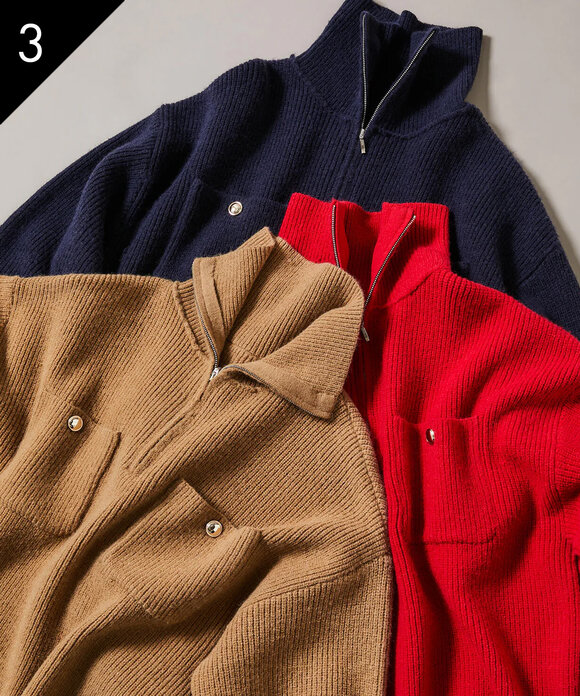 ハーフジップオーバーニット