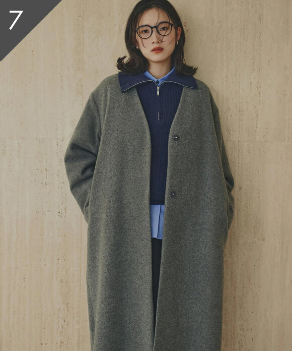 カラーレスロングコート