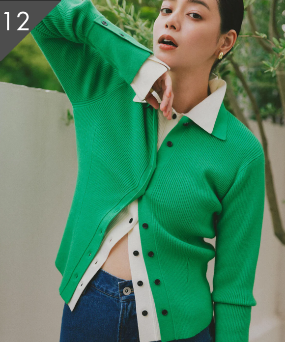 【岸本セシルさん着用】ポロ襟フレアカフスニット