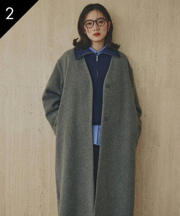 カラーレスロングコート