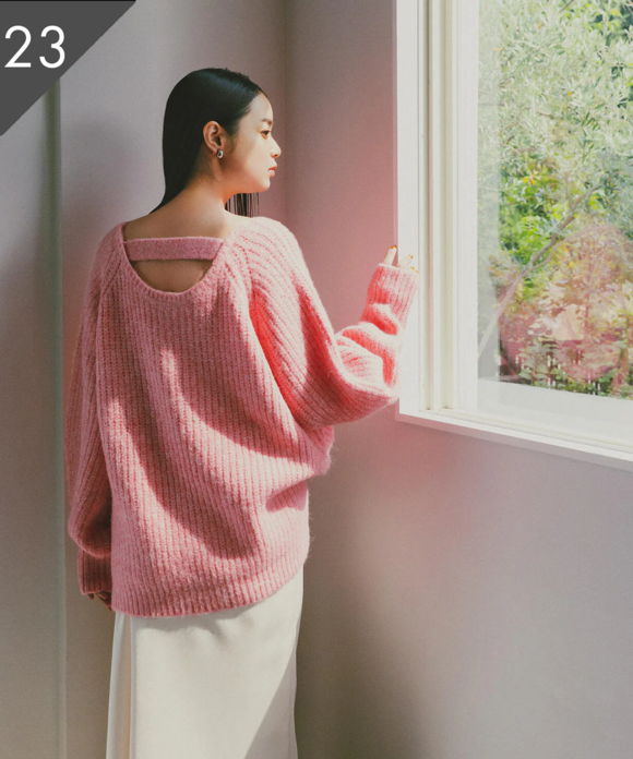 【岸本セシルさん着用】バックシャンボクシーニット