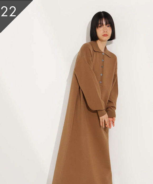 スキッパーネックニットワンピース