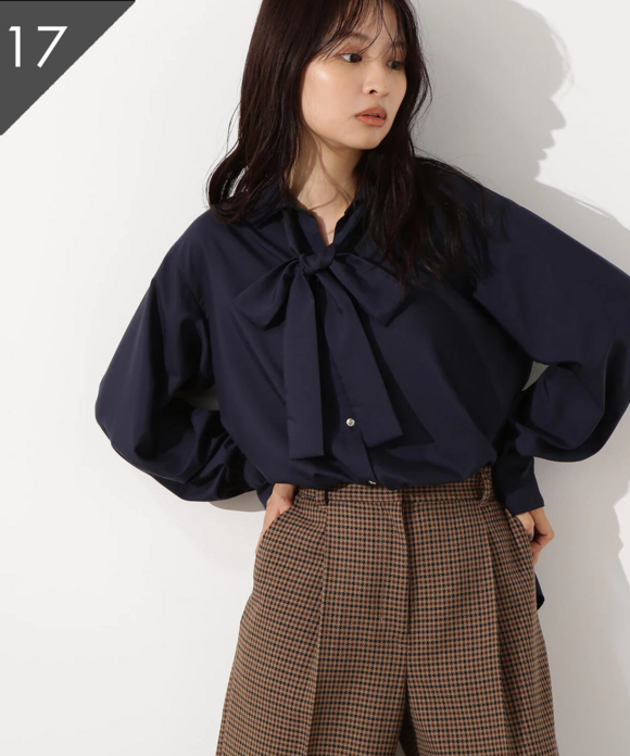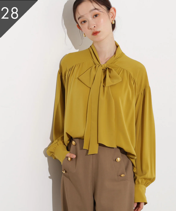 【小室安未さん着用】ゴールドボタン2wayリボンブラウス