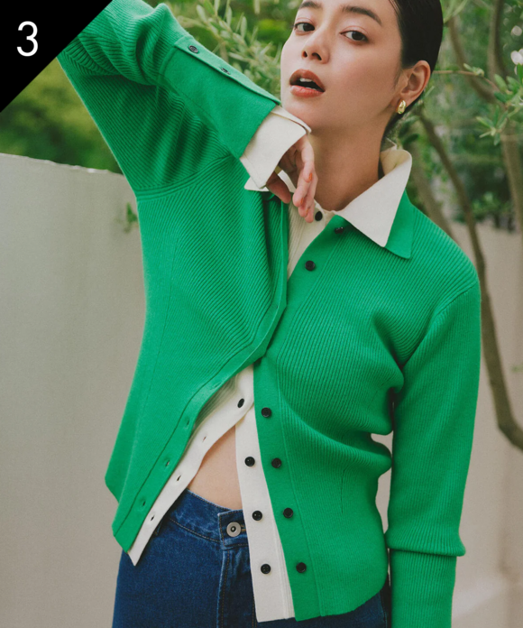 【岸本セシルさん着用】ポロ襟フレアカフスニット