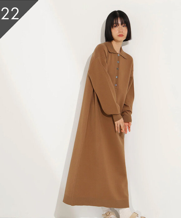 スキッパーネックニットワンピース