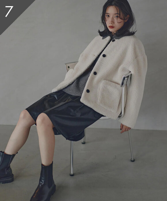 【岸本セシルさん着用】ノーカラーボアブルゾン