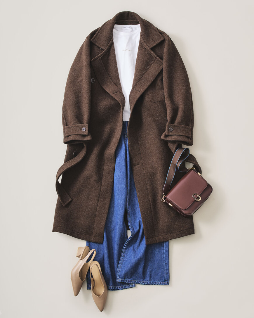 定番の茶系コート×デニム、垢抜けるにはどうしたら?!
