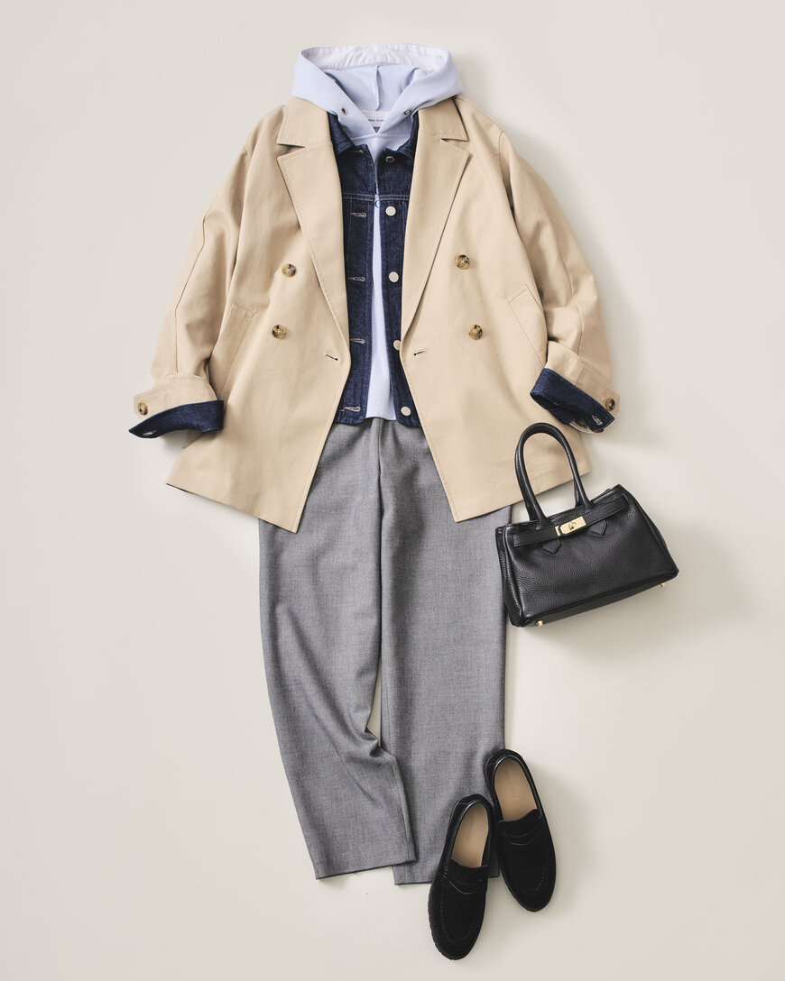 注目のデニムジャケットをレイヤードして、立体感を演出
