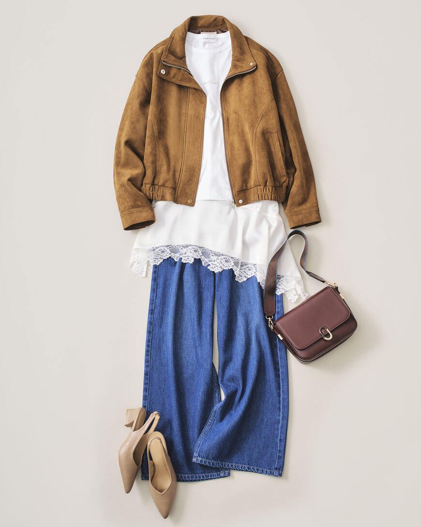ボトムスを白のワイドデニムに変えるだけで旬顔に