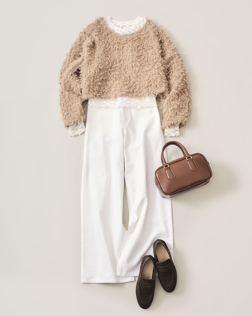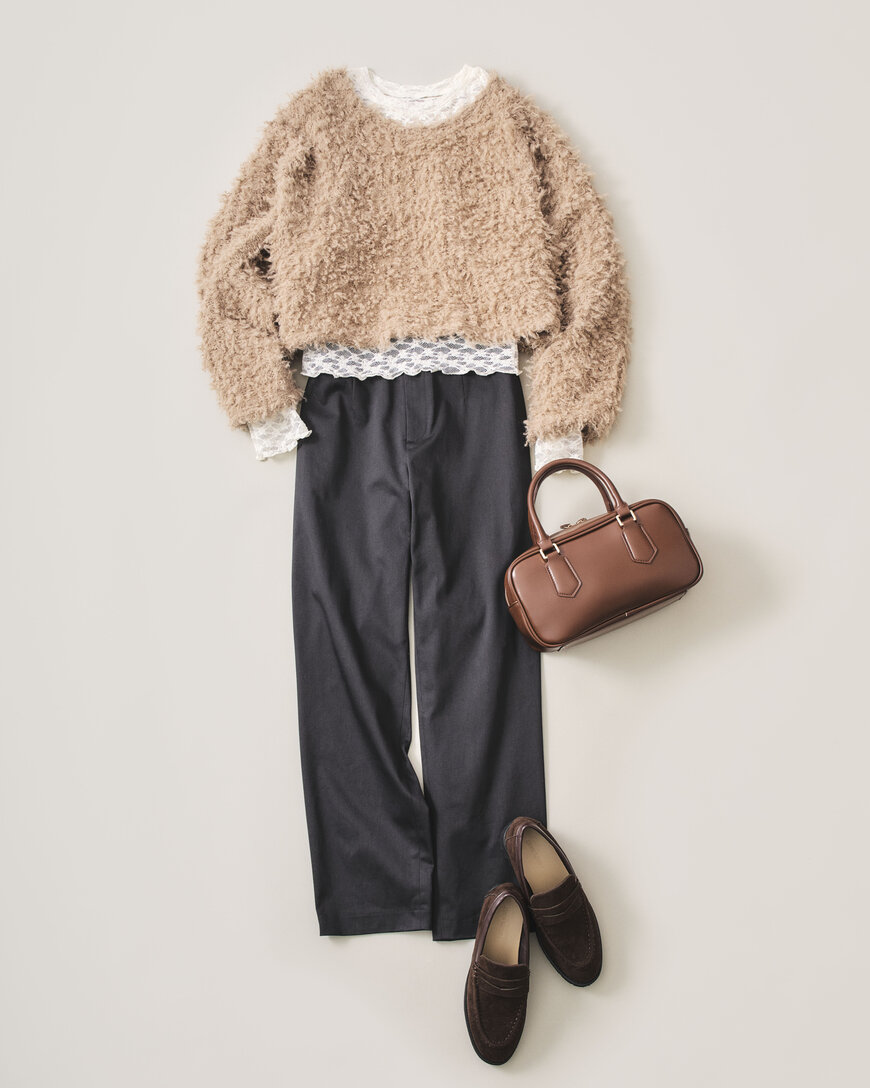 「ニット×パンツ」がつい平凡なワンツーコーデになりがち