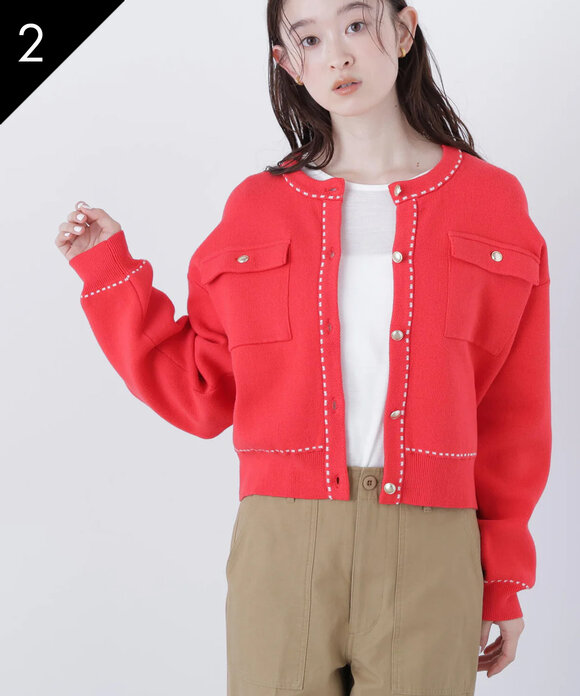 【銀座インズ・mix.tokyo 限定カラー:レッド】ベーシックポケットカーディガン