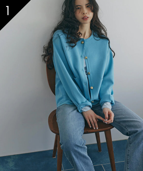 【銀座インズ・mix.tokyo 限定カラー:ネイビー】ステッチニットジャケット