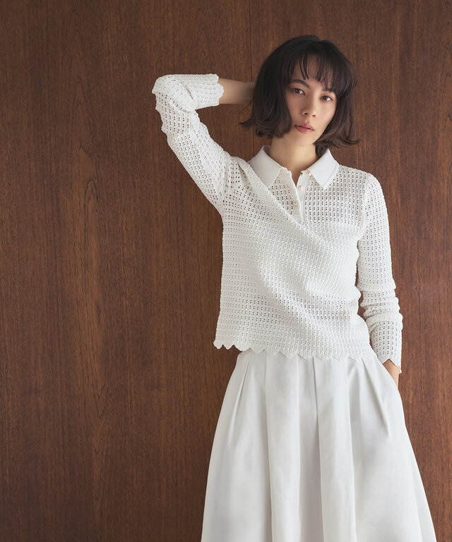 【好きを着て気分が上がる】襟が取り外せるアイレットジャガードニット