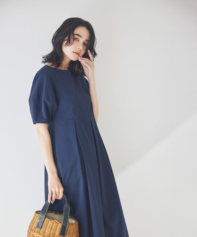 【ユーティリティ】軽やかで着心地の良いキレイ見えシアーサッカーワンピース