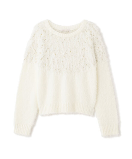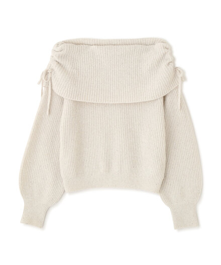 横に開いたネックラインが似合う骨格。オフショルニットは、リボンディテールやほのかなラメ感が立体的な骨格に自然となじみ、こなれた印象に。すらりとした膝上ラインを生かすなら、ハイウエストのミニスカートとブーツで重心を上げ、スタイルアップを実現。
