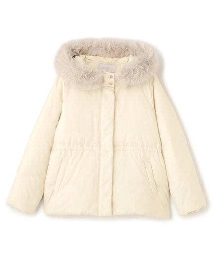 ストレートさんにとってダウンは少し難易度高め。でも、ウエストマークがあればすっきり美シルエットに着こなせます。閉めて着るときは首元を少し開けてVラインを意識すると、より洗練された印象に。ハイゲージVネックワンピースとのドッキングで合わせれば、オフィスにもデートにも映える、大人のきれいめダウンスタイルが完成します。