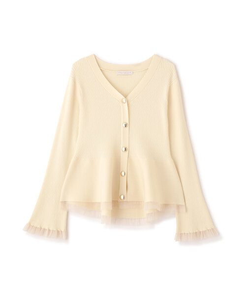 お袖や裾のチュールもフェミニンさがあり大人かわいい印象に見せてくれます。前ボタンは外れない仕様なので、被るだけで着脱できるのも嬉しいポイント!