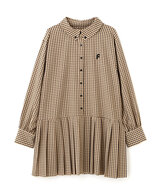 プリーツシャツロングスリーブミニワンピース