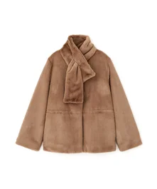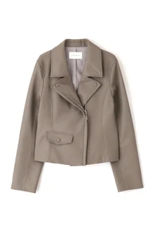 存在感のあるビッグカラーが印象的な、異素材コンビコート。