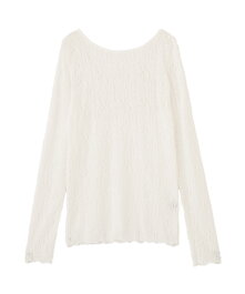 繊細なレースの透け感が軽やかで、いつものTシャツやニットにレイヤードするだけで旬の表情に。