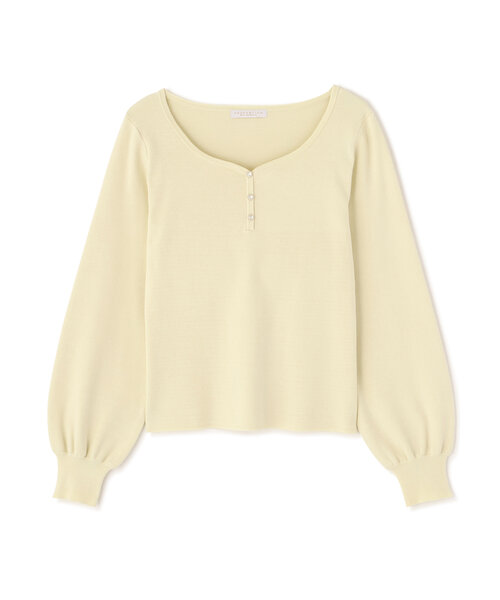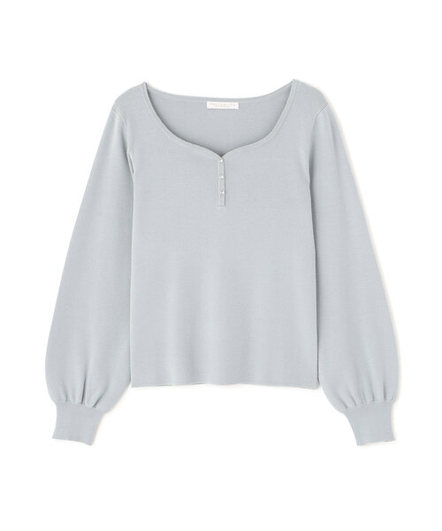 デコルテを美しく見せてくれる、ハートネックデザインの総針ニット。フロントに配したボタンがさりげないアクセントとなり、程よいシンプルさで幅広いコーディネートにマッチします。