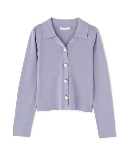 大きめの襟が上品で女性らしい印象の衿付き総針ニット。肩に入れたギャザーや程よく開いたネックラインが、春夏らしい抜け感を演出します。