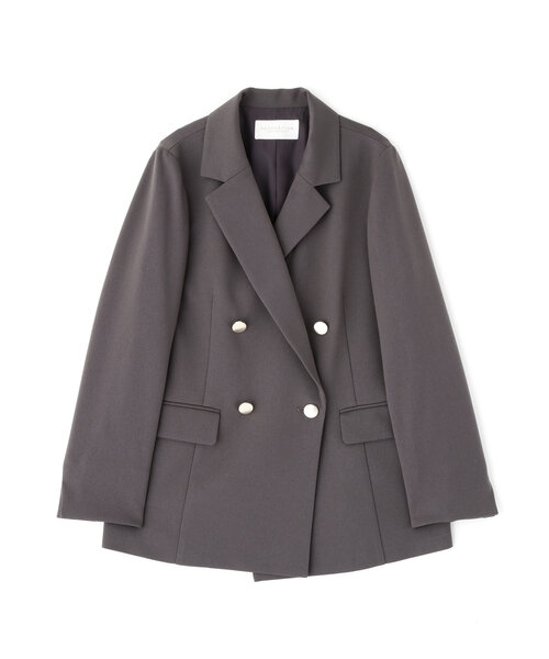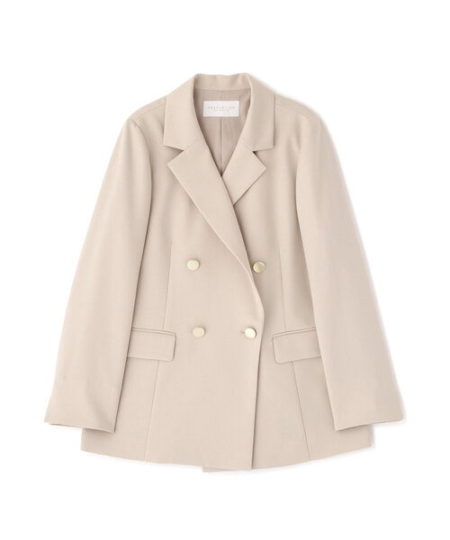きちんと感と今っぽさを兼ね備えた、テーラーカラーのダブルブレストジャケット。美シルエットが際立ち、羽織るだけで洗練された印象に。