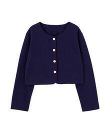 打ち込みの良い厚手カットソー素材を使用した、軽くて着やすいノーカラージャケット。金ボタンがアクセントになり、羽織りとしても活躍。短め丈でワンピースとも好相性です。