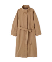 コットン見えのマットな合繊ツイルを使用した春コート。オーバーサイズでラフに着られ、バナナスリーブがポイント。ウエスト紐付きでシルエット調整も可能。比翼仕様ですっきり見えし、カジュアルにも通勤にも活躍します。