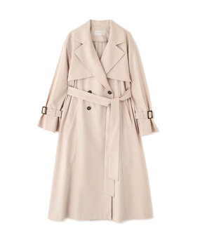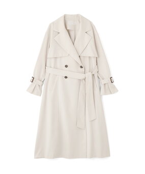 ロングトレンチはベルトを後ろで縛り、メリハリのあるシルエットに