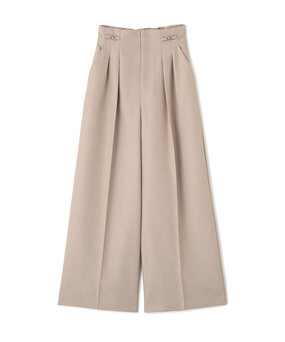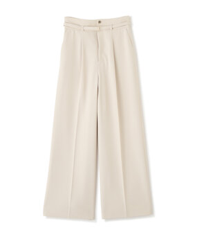 ボトムは、少しかたさのあるタック入りワイドパンツを選べば骨っぽさを拾わず、自然な立体感が生まれます。ヨコのビットデザインが腰の張りをさりげなくカバーしてくれるのも嬉しいポイント。