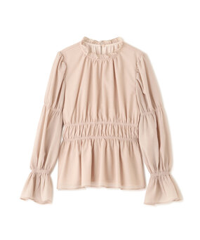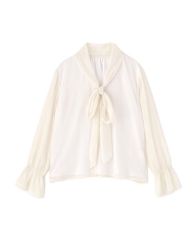 首元は、クルーネックなどの詰まったデザインが好相性。繊細なデコルテを引き立て、上半身に自然な存在感をプラスします。さらに、ギャザー入りトップスで立体感と華やかさを添えるのもおすすめ。