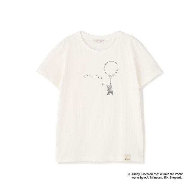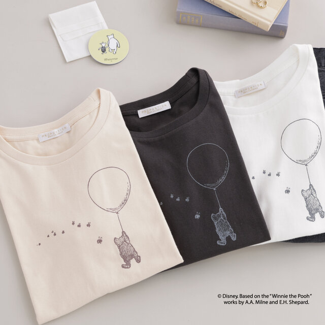 胸元には、主張しすぎないさりげないプリントでプーさんをあしらい、デイリーコーデに