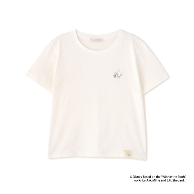 短丈シルエットのプーさんTシャツ。
