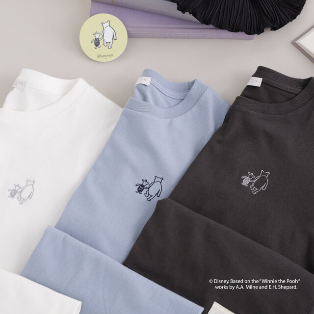 原作の世界観を感じられる親友ピグレットとのアートを、プリントではなく刺繍で表現することで、程よい立体感と上品な可愛らしさを