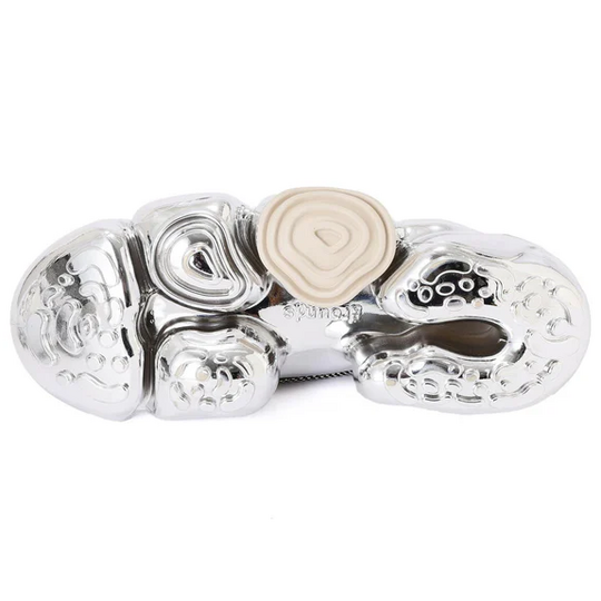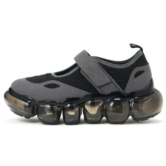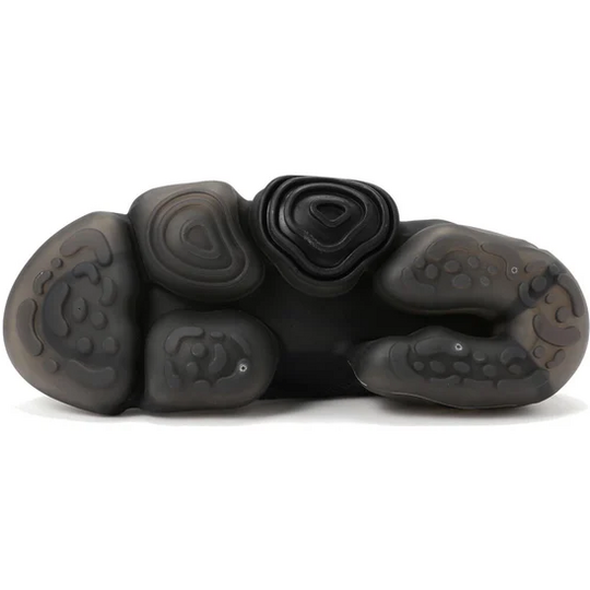 「人間と重力(地球)の関係に変化をもたらすこと」「人間と重力(地球)の接点であるアウトソールと地面を中心とした人間づくり」をテーマに、ボリュームのある特徴的なアウトソールを組み合わせたフットウェアを発表しています。